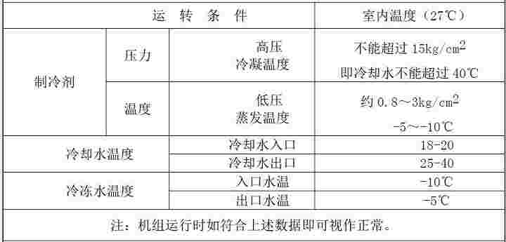 工業(yè)冷水機(jī)組正常工作的運(yùn)行參數(shù)