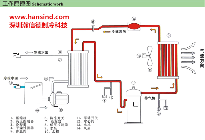 風冷式冷水機組工作原理:深圳瀚信德為你提供最專業的制冷原理分析,并免費提供風冷式冷水機組工作原理高清大圖,歡迎來電索取!或點擊查看風冷式冷水機組工作原理圖 。